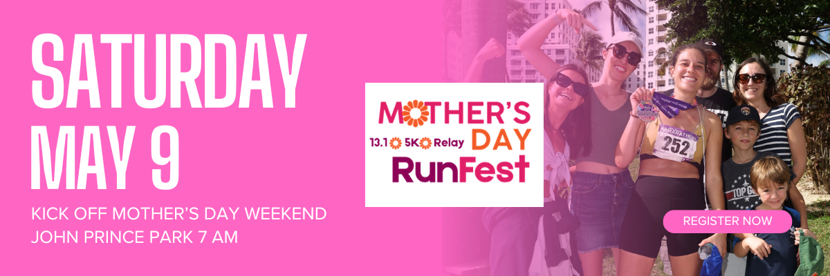 Please come join us on Saturday, May 9th to kick off a weekend celebrating Moms! We will have fast and flat 13.1, as well as a 5K and 2-person relay through John Prince Park in Lake Worth.